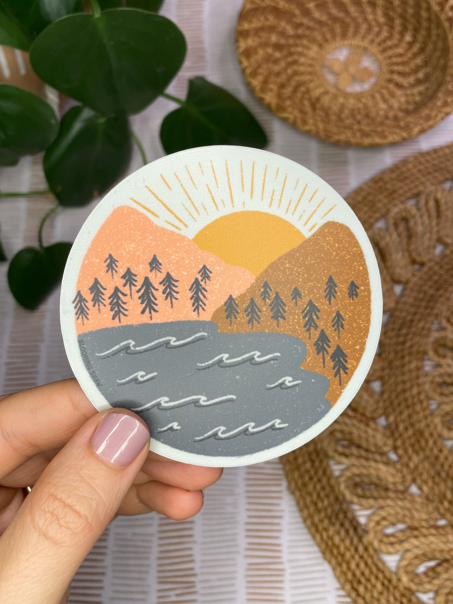 This sticker is part of the "Just Go" sticker collection. It is inspired by adventuring in the outdoors and the joys of exploring.