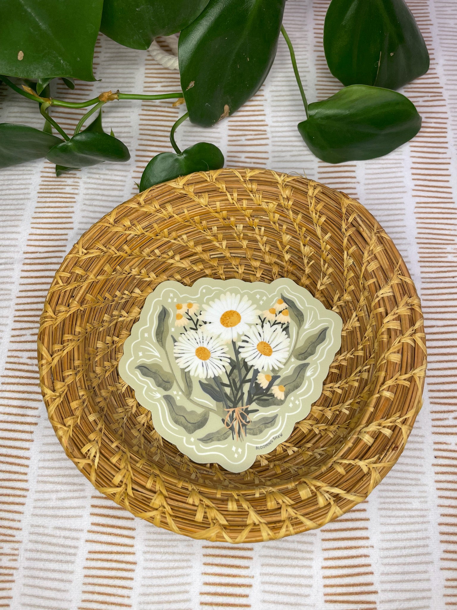 Magic Blooms- Daisy Floral on Light Green, 3.5" x 3"